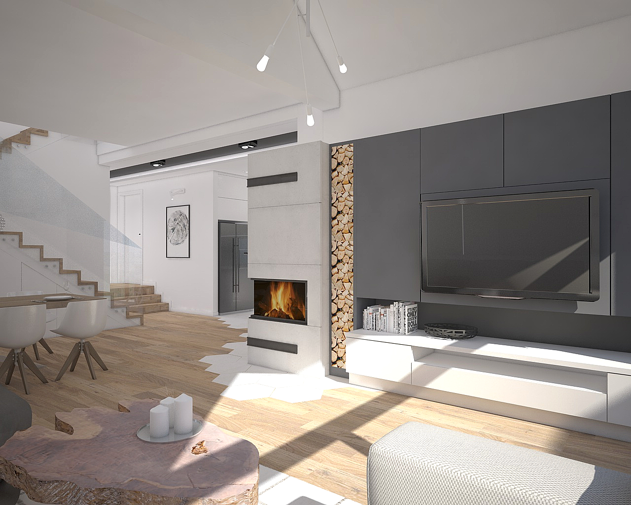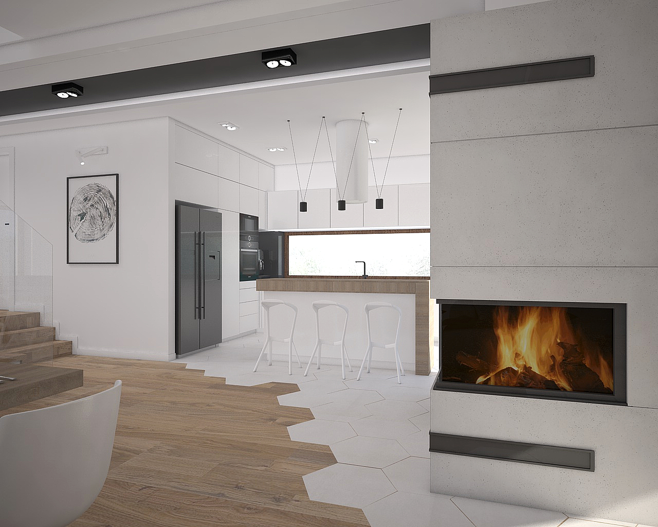 Heksagony rozgościły się tu na dobre, tak jak ciemne akcenty oraz betonowe dodatki.