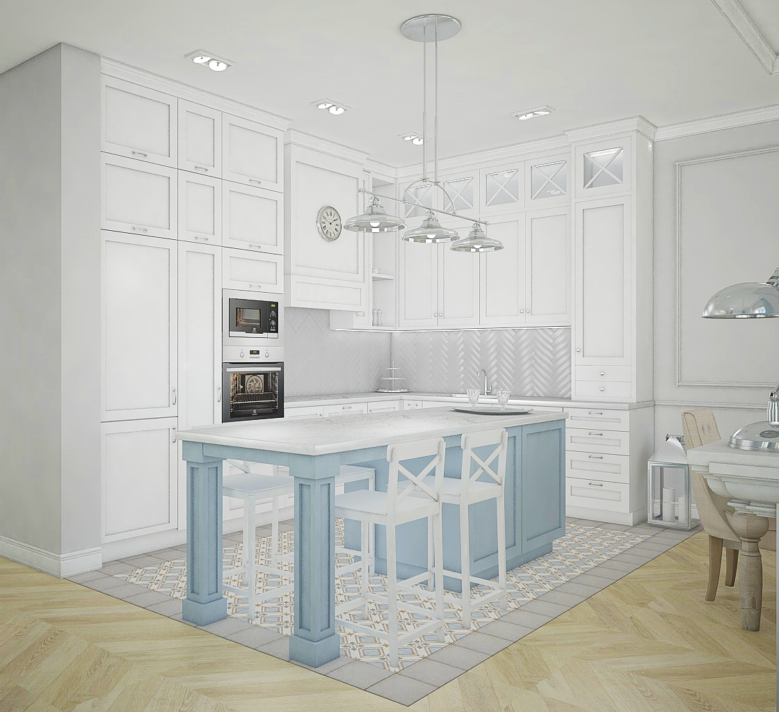 Tworząc te wnętrze oddałam się całej kobiecej delikatności jaką posiadam. Poruszając się w kolorystyce błękitu, bieli i szarości, czułam jakbym unosiła się na chmurach. Brzmi to trochę marzycielsko, ale w takich warunkach proces twórczy jest najbardziej udany.